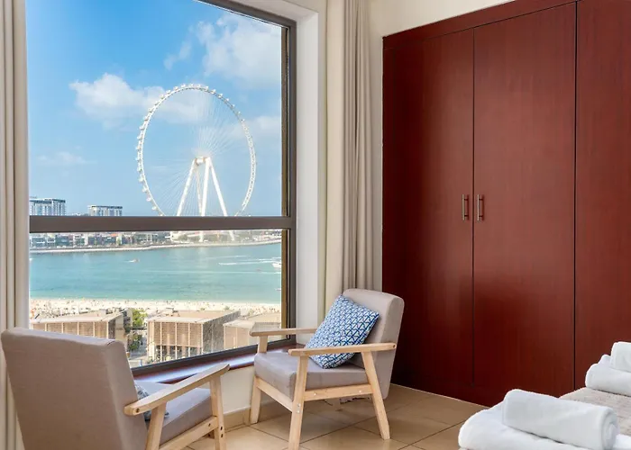 The spacious apartment lies 4.3 km from the Dubai Knowledge Village and 2.3 km from Skydive Dubai Skydiving Center. 7 Beds / Jbr / Sea, Jbr Beach And Ain Dubai Views / 3 Min Walk From Jbr Beach / Large Groups And Families / Ideal Vacation Location apartment is located in the Beach & Coast district. This accommodation is within a 10-minute drive of the Dubai Water Canal.